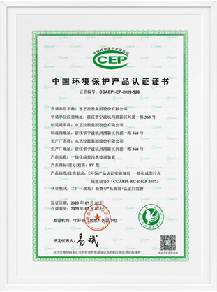 中國(guó)環(huán)境保護(hù)產(chǎn)品認(rèn)證證書-一體化成套污水處理裝置