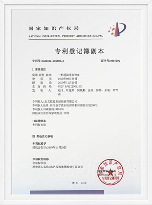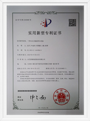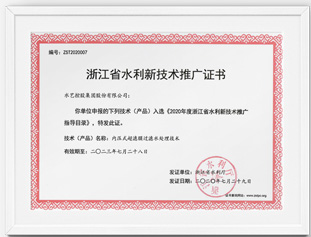 浙江省水利新技術(shù)推廣證書-內(nèi)壓式超濾膜過(guò)濾水處理技術(shù)