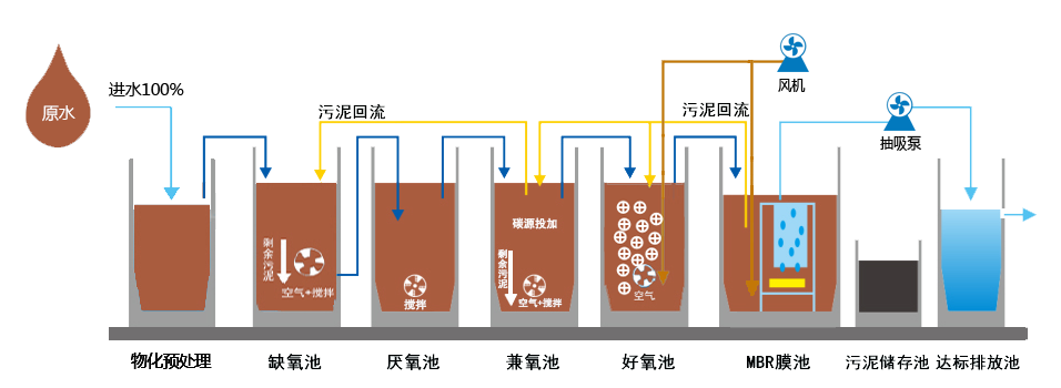 Slufri-MBR一體化高效生物反應器有效解決水質(zhì)波動大、氨氮含量高等問題,并能夠有效提升高濃度生活污水的處理效率,比傳統(tǒng)污水處理工藝提升60-80%。同時設備抗沖擊負荷能力強,脫氮除磷效率高,出水可穩(wěn)定達到《地表水環(huán)境質(zhì)量標準》(GB3838-2002)準IV類標準。