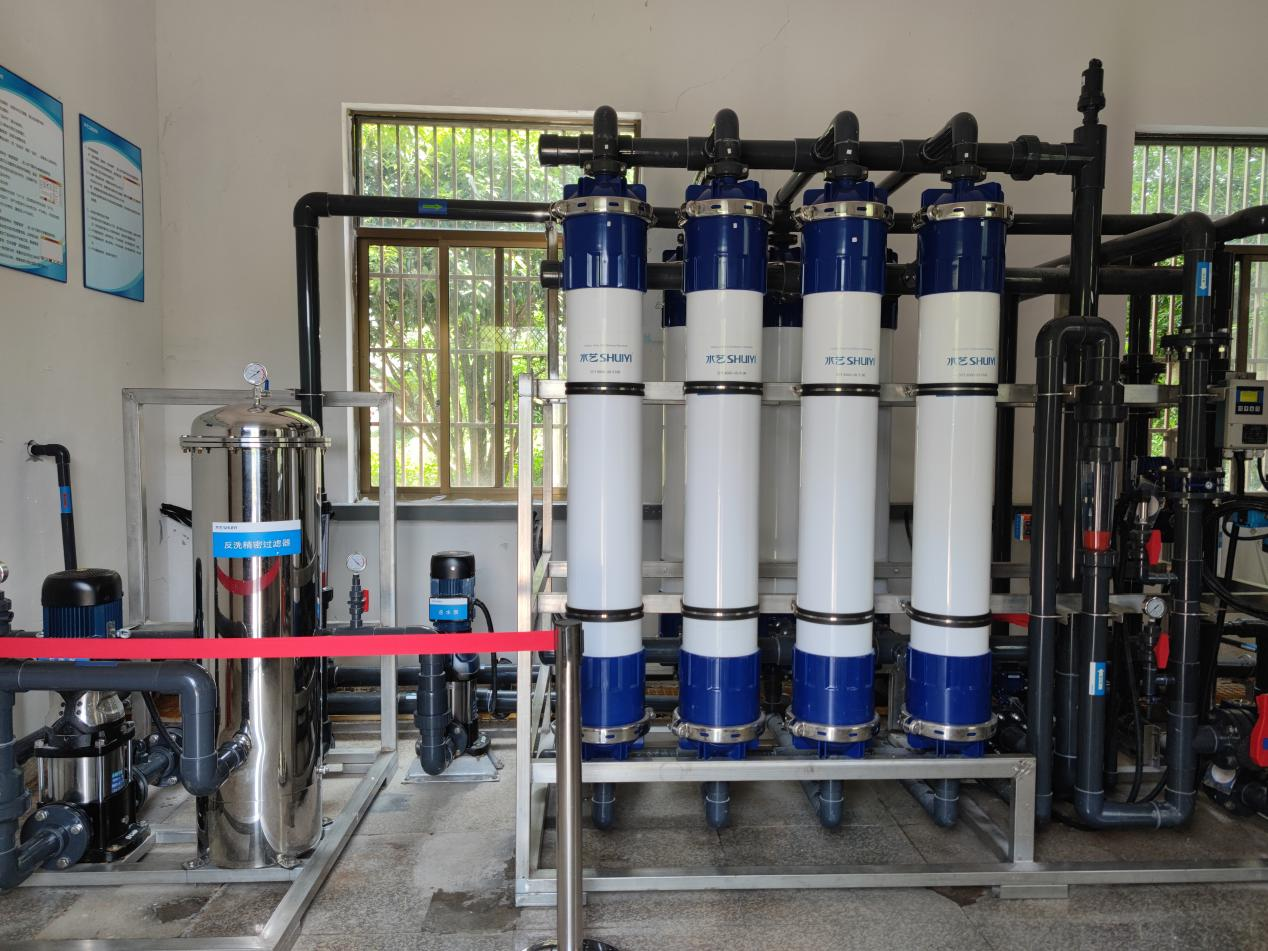 原來,橫坎頭村地理位置距離鎮(zhèn)核心區(qū)較遠且部分自然村地勢較高,市政自來水目前尚沒有覆蓋。當?shù)乜傮w水質(zhì)良好,但雨季時水質(zhì)濁度較高,導(dǎo)致水質(zhì)波動較大。近年來,當?shù)卣肓撕芏噢k法,但傳統(tǒng)凈化工藝雖能起到一定的降濁和消毒作用,但對水中的余氯、有機物、膠體等依然無法去除。